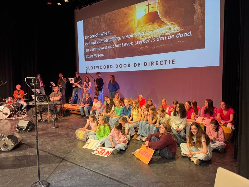 - De afronding dit jaar was een evocatie met als thema 'HOPE' op 3 april in de Groenzaal van Sint-Bavo. Een koor van een 30-tal leerlingen samen met de schoolband, een mooie presentatie en een creatieve technische ploeg zorgde voor een uniek moment waar in vier optredens 1.500 leerlingen aan deelnamen. Het thema van de evocatie was veerkracht. Het had aandacht voor de kracht van verstilling en kleine goedheid om moeilijke momenten in het leven veerkrachtig te verwerken. We verzamelen hieronder een klein fragment van de evocatie en wat sfeerfoto's.